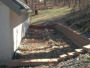 The end of day 1, a lot has been cleared away, you can see little steps in this picture, we didn't even know they existed until we cleared all the leaves away!