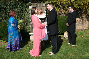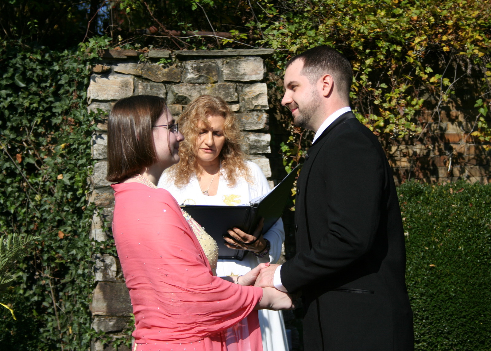 Michael and Elizabeth stand together and hold hands for the vows, which El reads and Elizabeth & Michael repeat together.