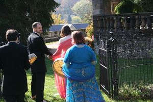 Michael and Elizabeth exit together, followed by the rest of the wedding party.