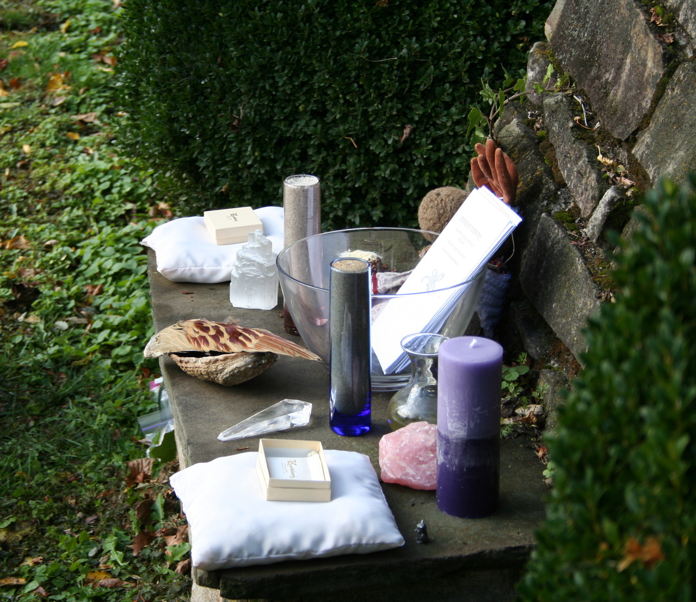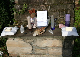 ![]() Preparation - Setting up the AltarThe altar was put together by the members of the wedding party before we dressed for the ceremony. Blessing the stones and crystals. Rev. El places the stones and crystals on the altar Side view of completed altar. Front view of completed altar. Home | The Girls Get Dressed > > |