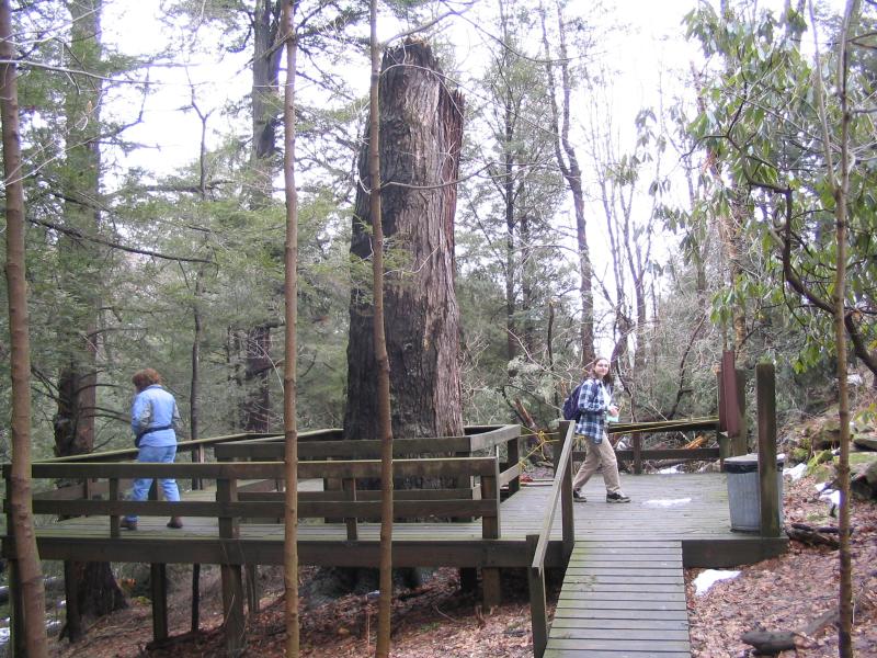 ![]() Saturday, March 26, 2005 - Morning In the morning we woke up to a delicious breakfast of fruit, then a ham and cheese quiche. While eating breakfast we sketched out our plans for the day. Decided to go to Cathedral State Park in the morning, and swing up to Falling Waters for a tour in the late afternoon. The weather here in Maryland was quite foggy and damp, but thankfully not raining. When we got into Frostburg (only about 3 miles from The Castle) we saw snow on all the cars, it looked like they got about half an inch over the night! The drive out to Cathedral took a little over an hour, and once we got there we were instantly disappointed, the big attraction there was the "Centennial Hemlock" and it had fallen down! Further exploration of the immediate area disappointed us further, the ground was muddy, there was snow piled up in places (sometimes blocking the trail), and the restrooms were all locked. We decided to head to Blackwater Falls instead. After getting a little lost (per my directions, oops) we made it to Blackwater Falls around 1pm. There was a bunch of people there. We walked down the wooden walkway to see the falls, only to discover that the bottom half of the walkway was closed! There was snow and ice all over it. Plus, there were people standing there smoking, kids running around screaming and throwing snowballs. Yuck. Michael got a bit annoyed at it all and walked back up to the car, we soon followed. In the car we talked for a bit about where to go next. We had plans at Falling Waters, but decided to skip that and try again for somewhere to hike. Michael had mentioned Audra State Park in West Virginia, and I had originally dismissed it because of the distance (over 2 hours from where we were staying), but we were pretty disappointed with the day thus far and decided to go anyway. The trip there took us down a whole lot of windy roads, up and down mountains, and as soon as we got through that the clouds parted and the sun came out. "I made the right choice," Michael said, grinning. I took this just to mean he'd finally get his nice hiking trip in, little did I know what he had planned! We arrived at Audra around 2:30, all climbed out of the car and headed toward a trail that Michael thought looked promising (he was looking for a specific trail he'd been on before and really enjoyed). It was everything he said it would be, and with the sun out, the day was turning out even better than I had expected. The trail was slippery, and on one particularly damp part where the ice was melting and dripping over everything, a rock came loose and caused Michael to lose his footing and slip. He was fine, albeit him and the camera were a little muddy, and hopped up quickly enough. I grabbed some tissues from the backpack and we were busy cleaning up the mud when Barry was called him to check out a nice spot he had found, I didn't think anything of it. << Friday, March 25, 2005 | Main | Saturday, March 26, 2005 - The Proposal >> |