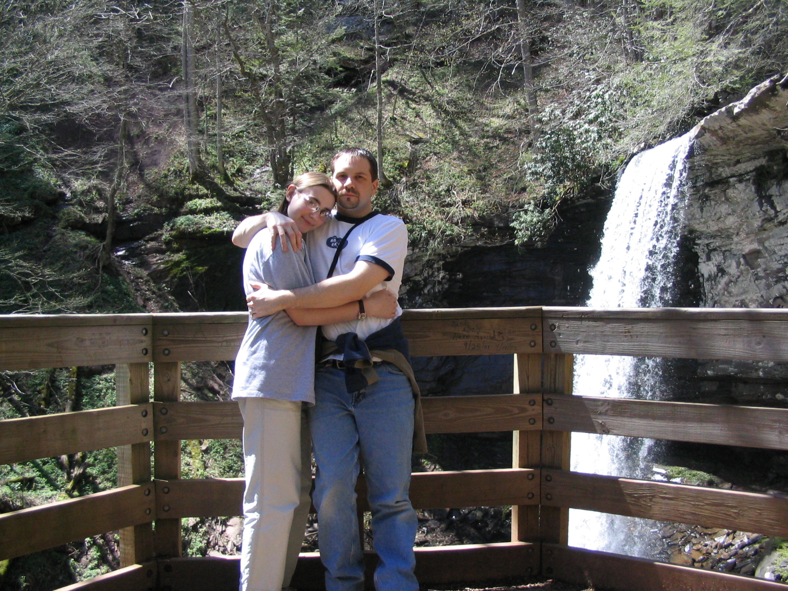 7:30 am, April 29, 2004 Wednesday morning we ate breakfast around 9, yummie apple spice pancakes and fresh fruit. It was a little after 10 when we finally had everything packed up to leave. We made plans to go down to the lower portion of Monongahela National Forest where Hills Creek Falls is. The day was sunny and perfect. ![]() Leaving from Elkins, we drove down and took the Highland Scenic Parkway. The Parkway was pretty cool, great views, a lot of places to stop. It's actually closed to any sort of truck traffic, and during the winter they don't plow it, so it's only open weather-permitting. Around 1:30 we found Hills Creek Falls. We stopped and took the trail to see the three falls. The first you see is the smallest, then you hike down, going on a bunch of stairways about 3/4 of a mile and you get to see te other falls, the last of which is the second tallest in West Virginia. We had a really nice time, and like the rest of our venures, there weren't many other people around, the only ones we encountered were on our way back up. ![]() After the falls, we decided tohead up to the next place we were staying at, and to get some dinner. We took 28 north and on the way drove by the National Radio Astronomy Observatory at Green Bank, WV! I had seen a brocure about it a couple days before, bit it must have been old, since it failed tin indicate that they were open at this time of year. We turned around and parked, then visited the visitor's center, it was pretty neat, but all the tours were over for the day, and it was late so we ended up leaving. We must devote an entire day to this! They have a nature walk down to the biggest telescope. We got back here to the North Fork Mountain Inn a little before 6. The drive up to this location took us on an 8 mile curvy road up the mountain, which was jsut recently paved. Our hostess here is very nice, and the room and the view are amazing. We grabbed some pizza for dinner in nearby Petersburg and then came back here to relax in the private jacuzzi, then snuggled by the fireplace. It was great. Featured Photos (click to enlarge) |